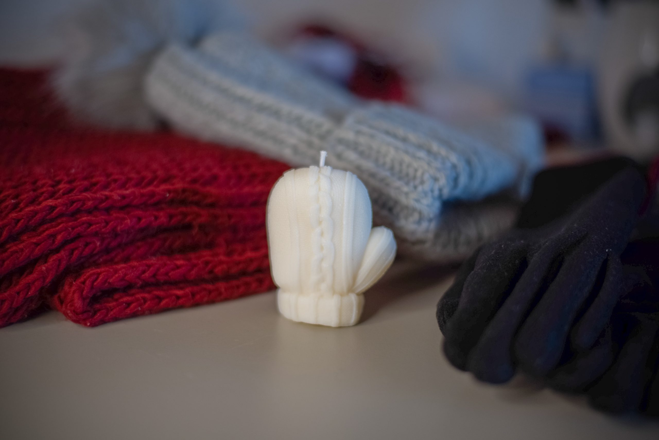 Dekorativna svijeća od prirodnog sojinog voska – birate oblik (Uspavani Djedica, Božićna vožnja, Rukavica). Ručno rađena svijeća u eco stilu unosi čaroliju u svaku prostoriju.